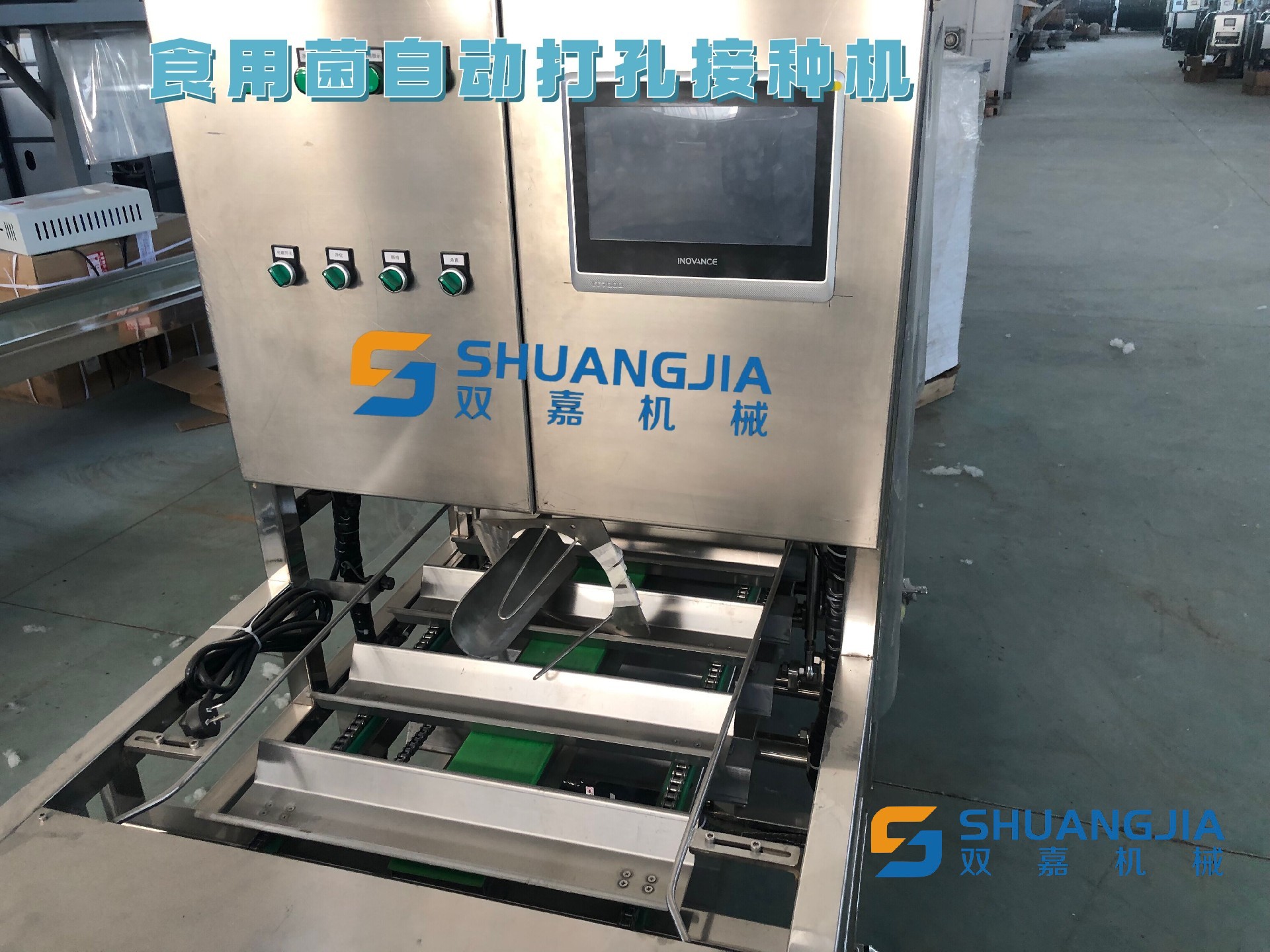 此款自动接种机为第四代产品,稳定性强,不堵料,下料均匀,打孔一致,感染率低,故障率低的特点,适用于各种代料固体菌种接菌种使用。有气电混合款,纯电动两款选择。 全自动打孔接种机参数: 1,外形尺寸:2米*0.8米*1.75米 2,功率:7.5KW 3,打孔针直径:26MM 孔距:105MM&