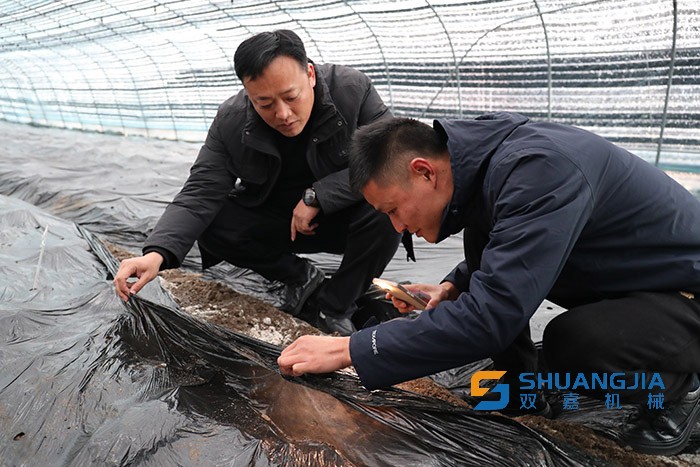 近日,在安徽涡阳县高炉镇代集村羊肚菌种植项目基地,代集村驻村帮扶干部与种植技术人员一起察看羊肚菌菌丝生长情况。