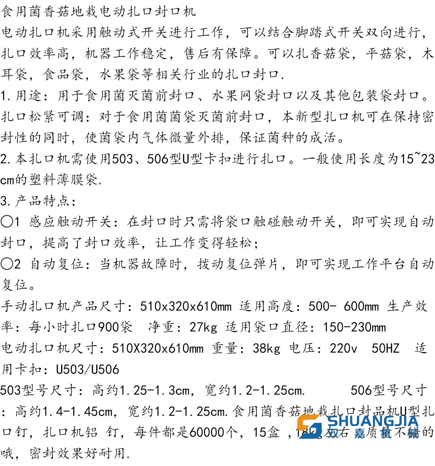 湖北双嘉机械是专业食用菌设备厂家,主营全自动装袋机、装袋扎口、扎绳、窝口一体机、微压高温灭菌柜、智能烘干机、菌包全自动化生产线等,支持定制、上门安装,为全国各大食用菌种植基地与合作社,提供一站式设备解决方案。