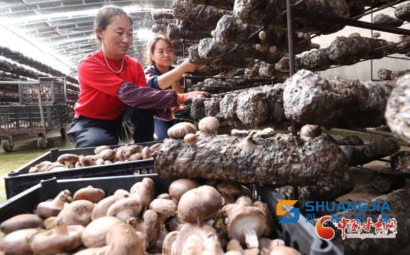 近年来,甘肃民乐县立足冷凉气候、早晚温差大等得天独厚的气候条件,把食用菌产业作为农业结构调整的重要举措,发展姬菇、香菇、木耳、金耳、白灵菇等菌类的菌种培育、菌包生产和食用菌工厂化生产。目前,民乐县已建成食用菌工厂化基地7个,食用菌大棚1595座,食用菌年总产量达6000多吨。近日,在民乐县工业园区一个食用菌种植大棚内,工人们忙着采摘成熟的香菇。