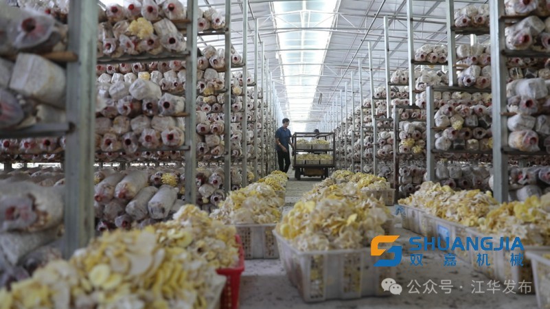 山青生物是一家专业从事食用菌种植、加工、销售一体化经营的国家高新技术型企业。2021年,山青生物从云南考察学习后引进榆黄菇,共种植了20万袋,成为江华县第一家种植榆黄菇的基地。目前,已发展20个大棚,共种植150万袋食用菌,包括榆黄菇、秀珍菇、平菇、姬菇等品种,实现了四季有菇,也为工人提供了全年稳定的就业机会。