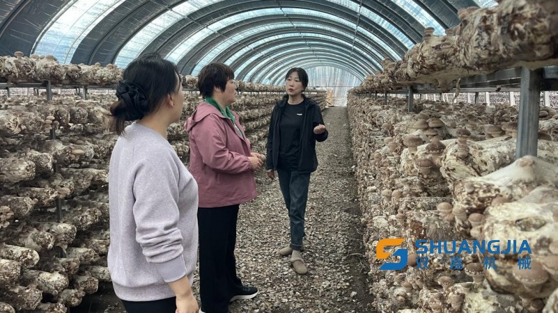 在榆树乡兴龙食用菌合作社,专家现场查看了香菇菌棒转色出菇情况,针对香菇0912品种爆发出菇进行指导。刘俊杰指出,一些香菇品种本身具有出菇集中、爆发的特点,在适宜的环境条件下,能够快速形成大量的子实体原基,从而呈现出爆发出菇的现象。可以通过少量注水的方法,破坏其菌丝生长舒适条件来控制集中出菇,促进高质量出菇、出好菇。