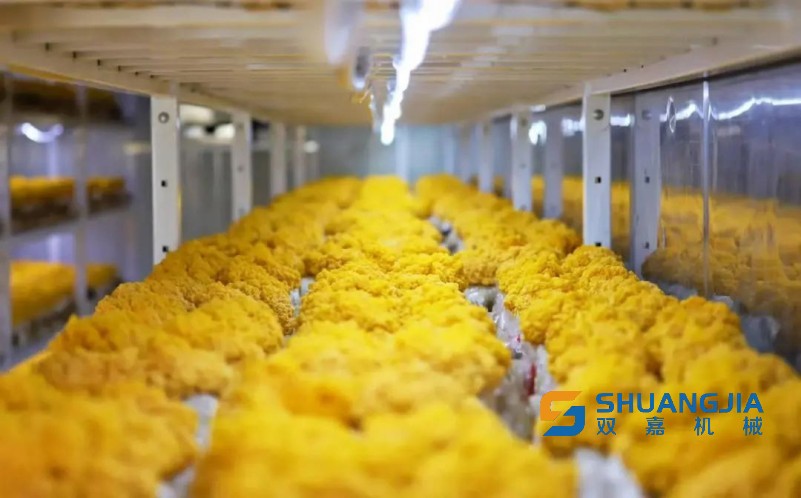 据了解,种植基地由废弃学校改建而来,10个集装箱般的“智慧方舱”整齐排列。步入恒温恒湿的方舱,菌包整齐排列在架子上。原本生长于云贵高原的金耳,通过方舱内集成的超声波雾化、自动恒温、视觉感应及人工智能系统,实现了对温度、湿度、光照、通风及二氧化碳浓度的实时精准调控,成功“北迁安家”,并实现“天天出菇”。