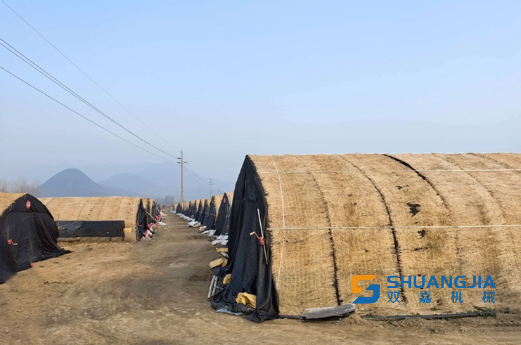 在安徽东至县尧渡镇池州市德丰菌业有限责任公司羊肚菌种植基地,一排排覆盖草苫的钢架大棚整齐排列,大棚内羊肚菌菌霜铺满厢面。今年这里的羊肚菌产量和质量预计将有显著提升,这得益于“两膜一苫”的新型栽培技术的成功应用和推广。