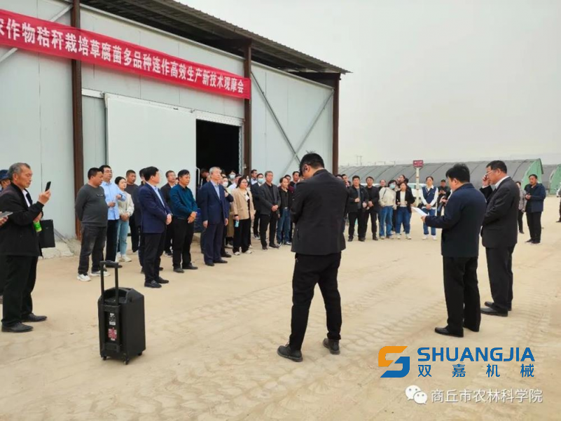 为提升河南省农作物秸秆种菇绿色高效生产技术水平和社会影响力,4月11-12日,依托河南省“四优四化”优质食用菌专项,商丘市农林科学院与省农科院资环所在商丘市联合召开“农作物秸秆过菇还田减肥增效生产技术集成与示范”“农作物秸秆栽培草腐菌多品种连作高效生产新技术集成与示范”观摩培训会。河南省食用菌协会会长、“四优四化”食用菌专项首席科学家康源春研究员,虞城县县委常委、闻集乡党委书记蒋验军,夏邑县人大常委副主任王全涛,商丘市农林科学院总农艺师刘利民等专家领导,以及来自河南省各有关市、县农科系统的领导、专家、科技人员和安徽省亳州市食用菌一线生产管理人员118人参加会议。